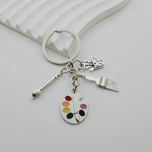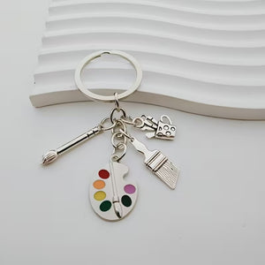Hayat senin tuvalin, renkleri sen seç." 🎨 Bu anahtarlık, yaratıcı ruhlar için minyatür bir sanat stüdyosu gibi: Renkli mineleriyle detaylandırılmış bir boya paleti, ince uçlu fırça, geniş boya fırçası ve kalemlik. Gümüş renginin sadeliği, paletin renkleriyle canlanıyor.