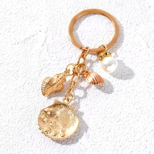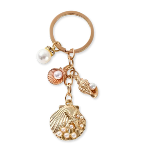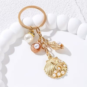 Anahtarlığın sadece kapı açmaz, tarzını tamamlar. Deniz kabuğu, inci ve denizyıldızı detaylarının gold ışıltısıyla buluştuğu bu tasarım, sıradan metal halkaların çok ötesinde. İster çanta aksesuarı (bag charm) olarak kullan, ister anahtarlarına sınıf atlat.