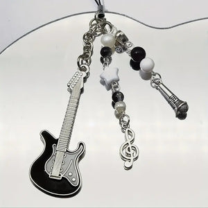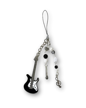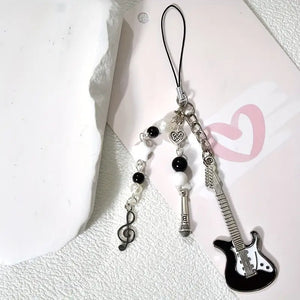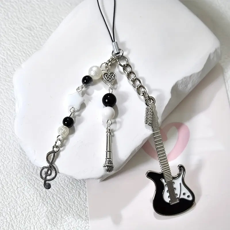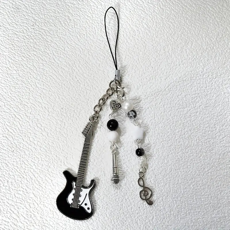Gitar & Mikrofon Figürlü Boncuklu Telefon Zinciri – Müziği Taşıyan Şirin Aksesuar
