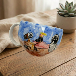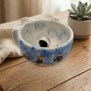Sıradan kupaların aksine, bu tasarımın içinde sizi bekleyen küçük bir dost var. İçeceğinizi yudumladıkça ortaya çıkan 3 boyutlu el yapımı figür, size "yalnız değilsin, hikayen burada" diyor. Yüksek kaliteli seramik yapısı, içeceğinizin ısısını ideal sürede korurken, el emeğiyle şekillenen ergonomik tutuşu avucunuza tam oturur.
