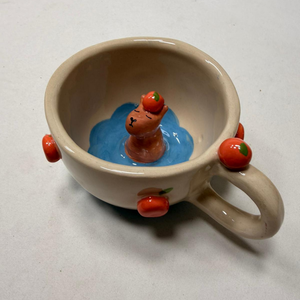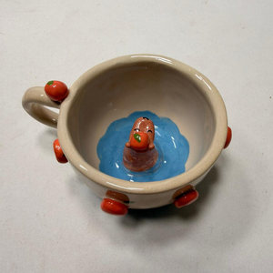 Sıradan kupaların aksine, bu tasarımın içinde sizi bekleyen küçük bir dost var. İçeceğinizi yudumladıkça ortaya çıkan 3 boyutlu el yapımı figür, size "yalnız değilsin, hikayen burada" diyor. Yüksek kaliteli seramik yapısı, içeceğinizin ısısını ideal sürede korurken, el emeğiyle şekillenen ergonomik tutuşu avucunuza tam oturur.
