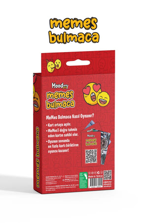 Memes Bulmaca, arkadaş ortamında kahkaha garantili anlar yaşatan hızlı ve rekabetçi bir tahmin kart oyunudur. Oyuncular karttaki meme görselini dikkatlice inceler ve ne olduğunu tahmin etmeye çalışır. Tahminler yapıldıktan sonra kart üzerindeki QR kod okutulur ve doğru cevap açılır. En çok doğru tahmini yapan ve en fazla kartı toplayan oyuncu oyunu kazanır.